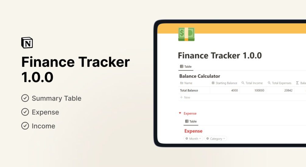 A Notion dashboard to track all your incomes, and expenses and help you stay within your budget!