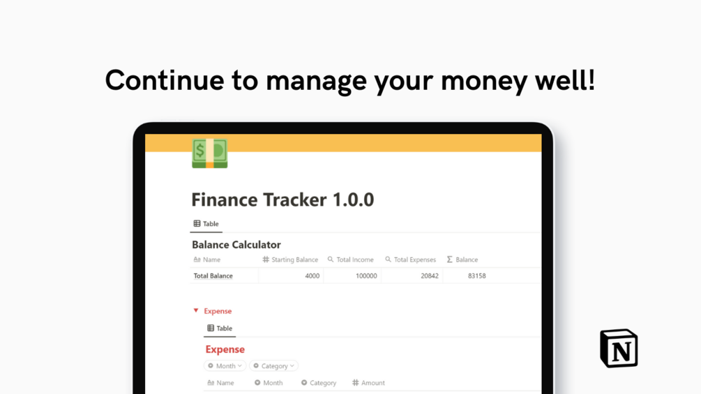 A Notion dashboard to track all your incomes, and expenses and help you stay within your budget!